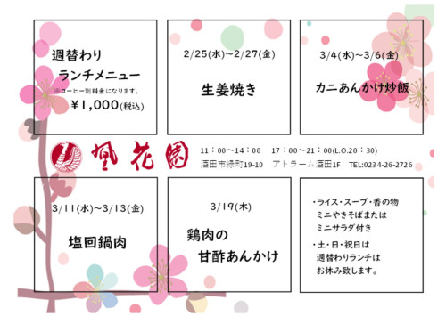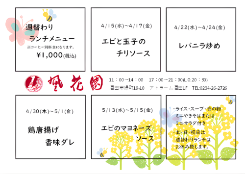 凰花園北前横丁店にてお昼の弁当販売を実施いたします。